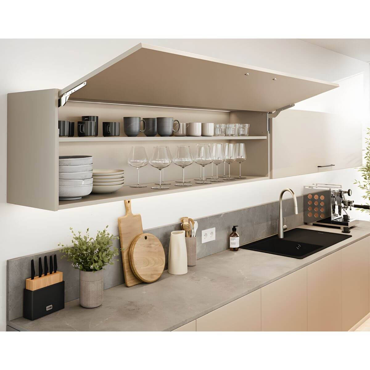 The FREE SLIM FLAP covers a wide range of applications from 1 to 12 kg with a flap height of 400 mm using just a single fitting. This reduces the number of variants and significantly simplifies planning, stock management and installation.