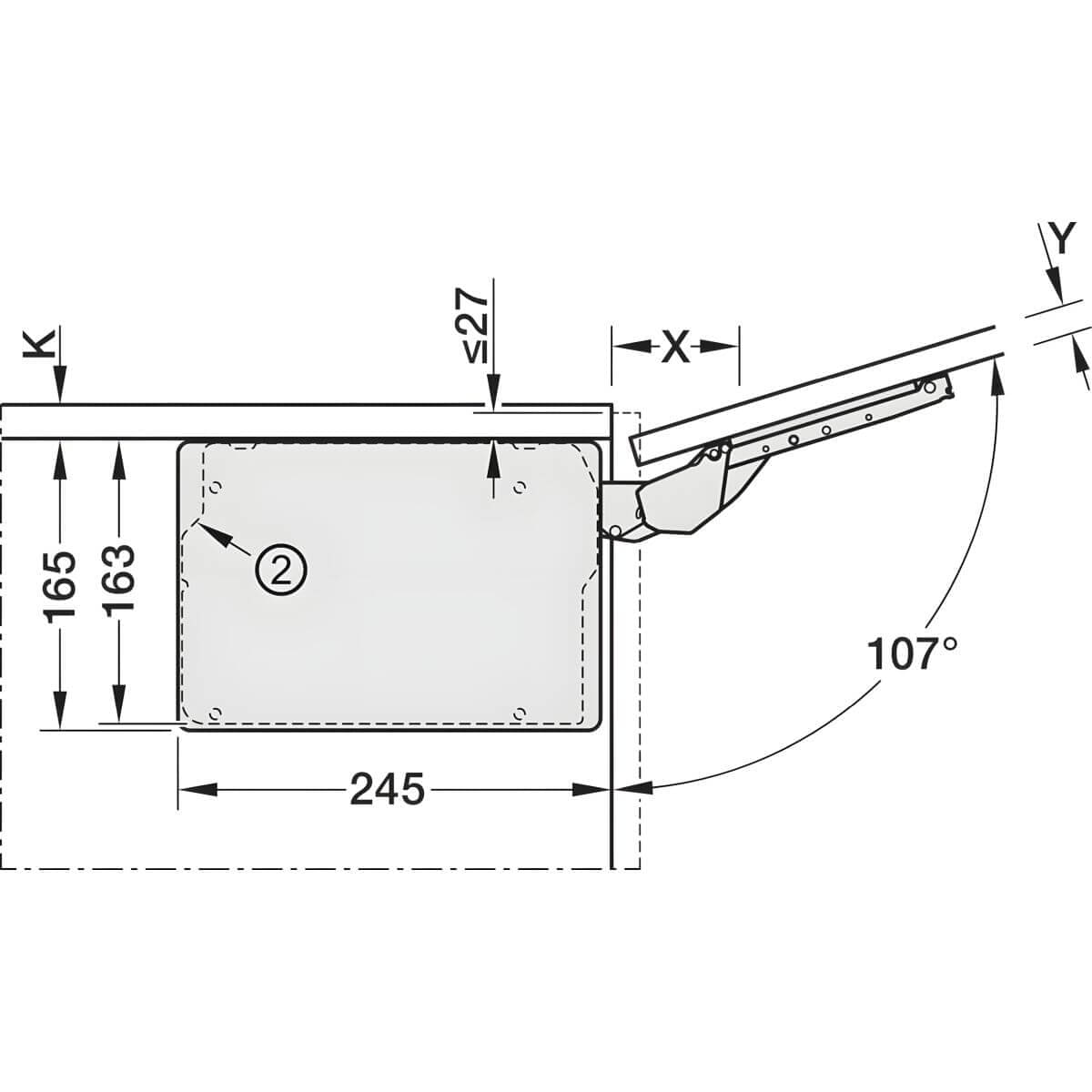 With an adjustable opening angle of 90° or 107°, the FREE SLIM FLAP adapts perfectly to different room layouts and usage requirements. It is suitable for cabinet widths up to 1,800 mm and cabinet heights from 225 to 650 mm, and supports flap weights of up to 21.3 kg, subject to the guidelines table and cabinet height. Thanks to an installation depth of 245 mm, the fitting can be efficiently integrated into a wide variety of furniture designs.