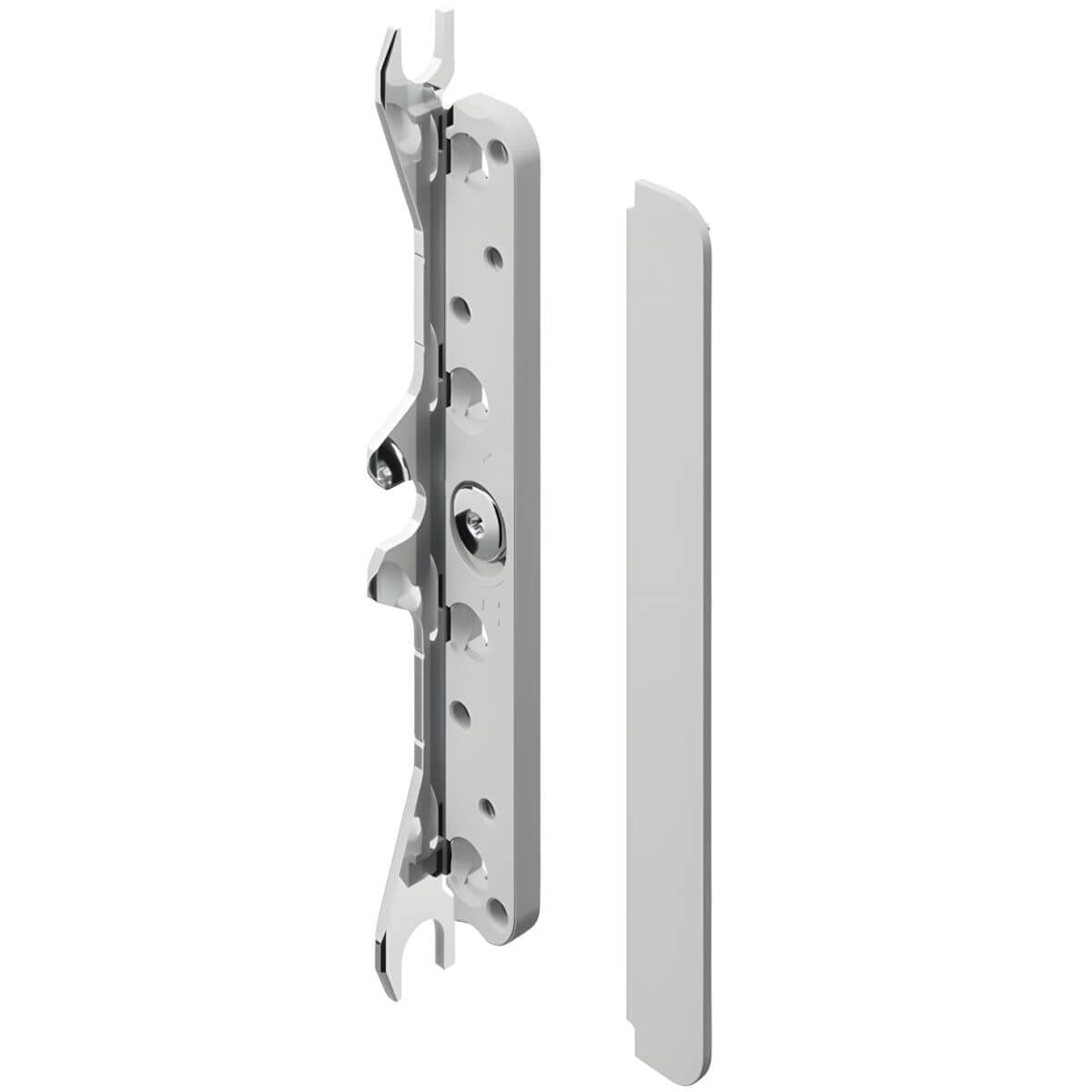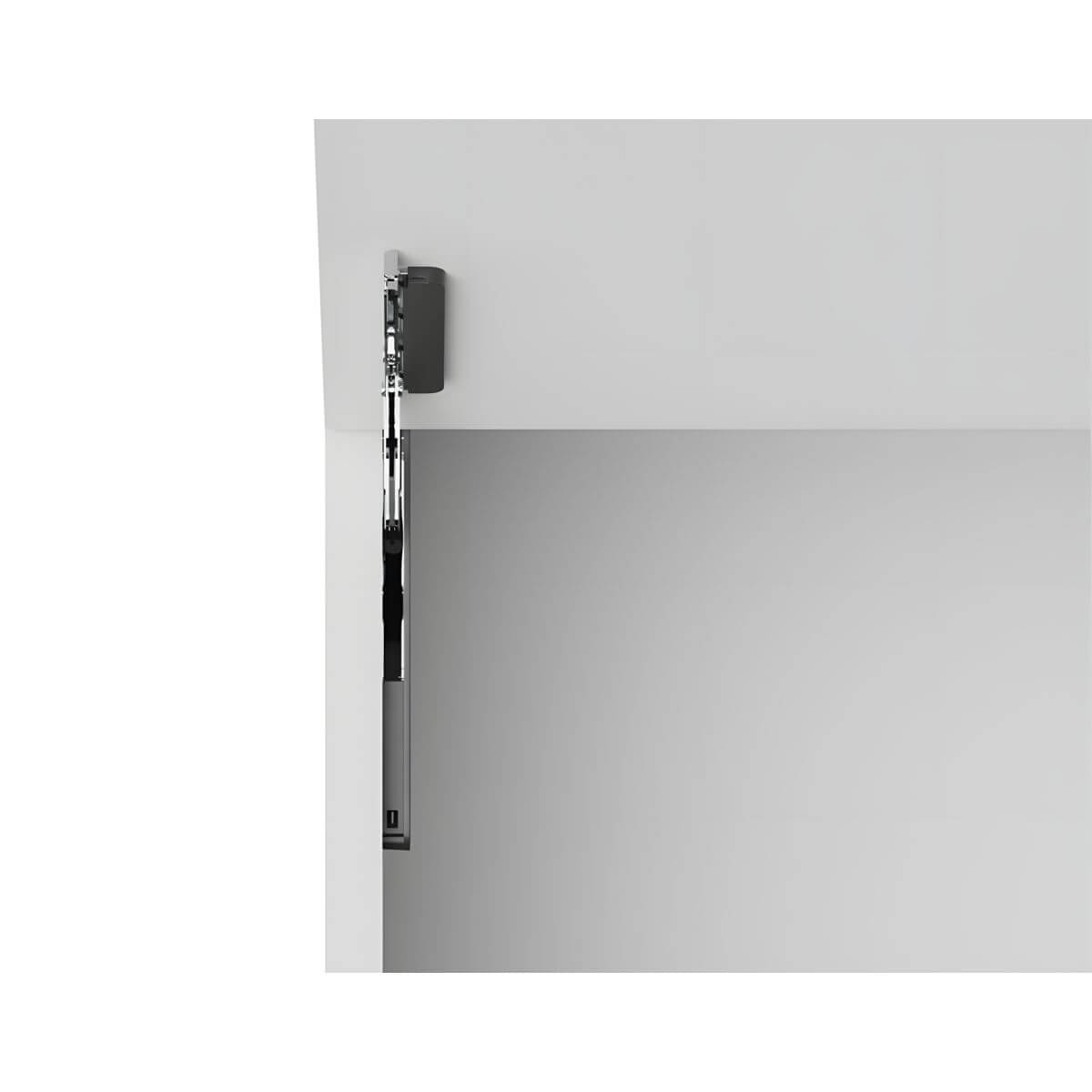 A particular highlight is the extremely slim design with a projection of just 8 mm. This opens up new design possibilities and enables particularly slim furniture constructions. The fitting is symmetrical and can be used on both the left and right. Installation can be carried out either in the traditional manner on the inside of the side panel or elegantly integrated into the side panel from the outside. With integrated installation, the fitting technology remains virtually invisible and ensures a particularly high-quality appearance.